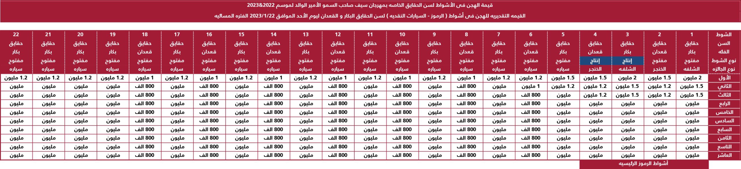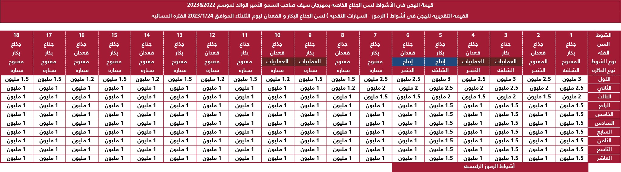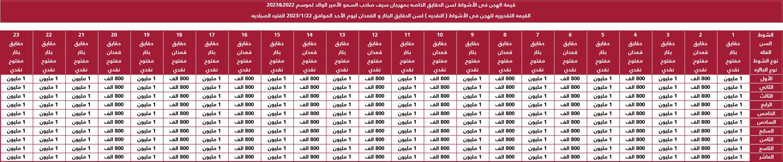 تحديد القيمة التسعيرية لأشواط الحقايق واللقايا والجذاع بمهرجان سمو الأميرالوالد