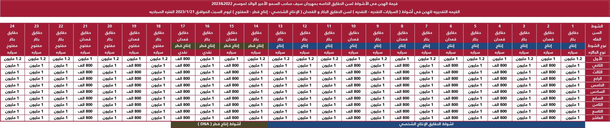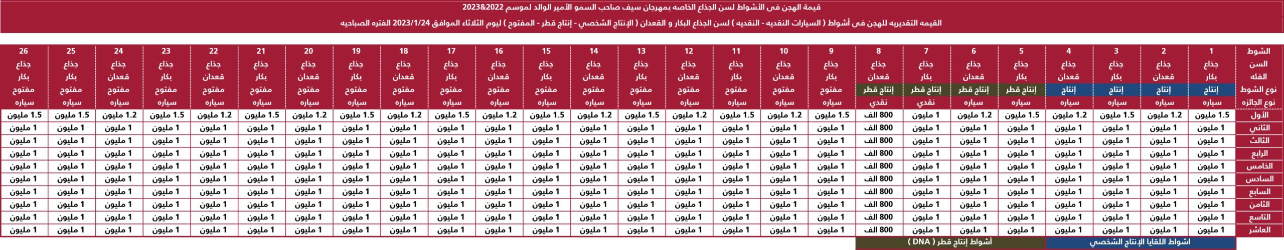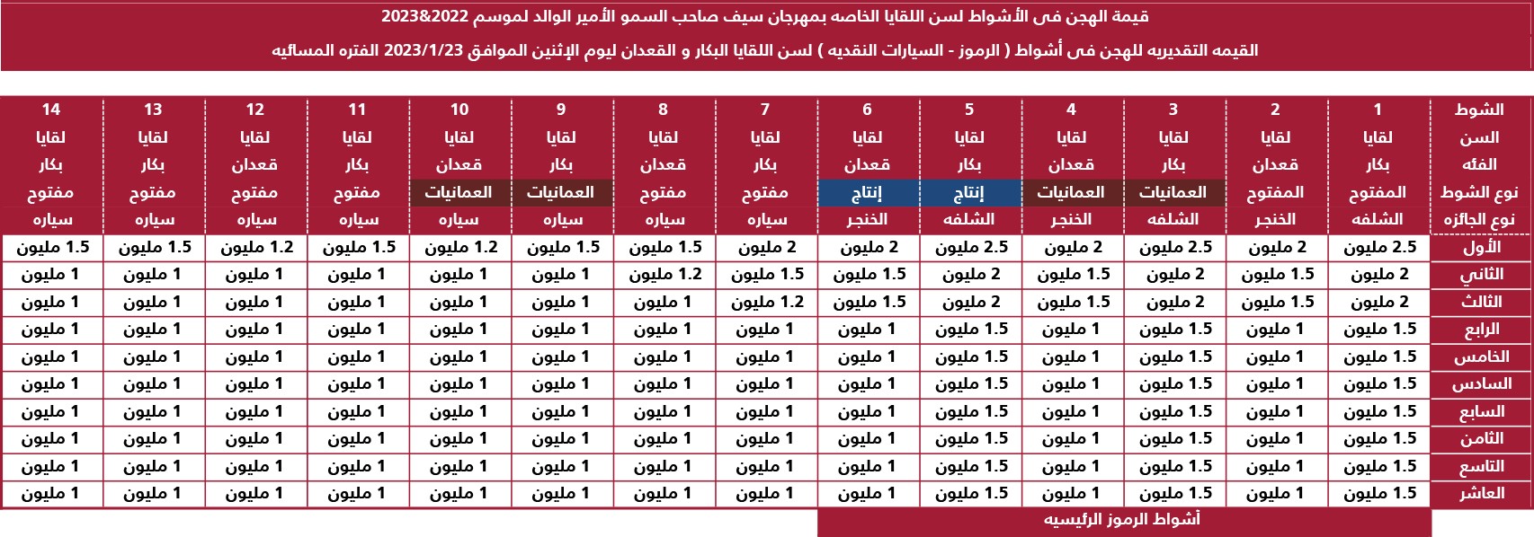 تحديد القيمة التسعيرية لأشواط الحقايق واللقايا والجذاع بمهرجان سمو الأميرالوالد