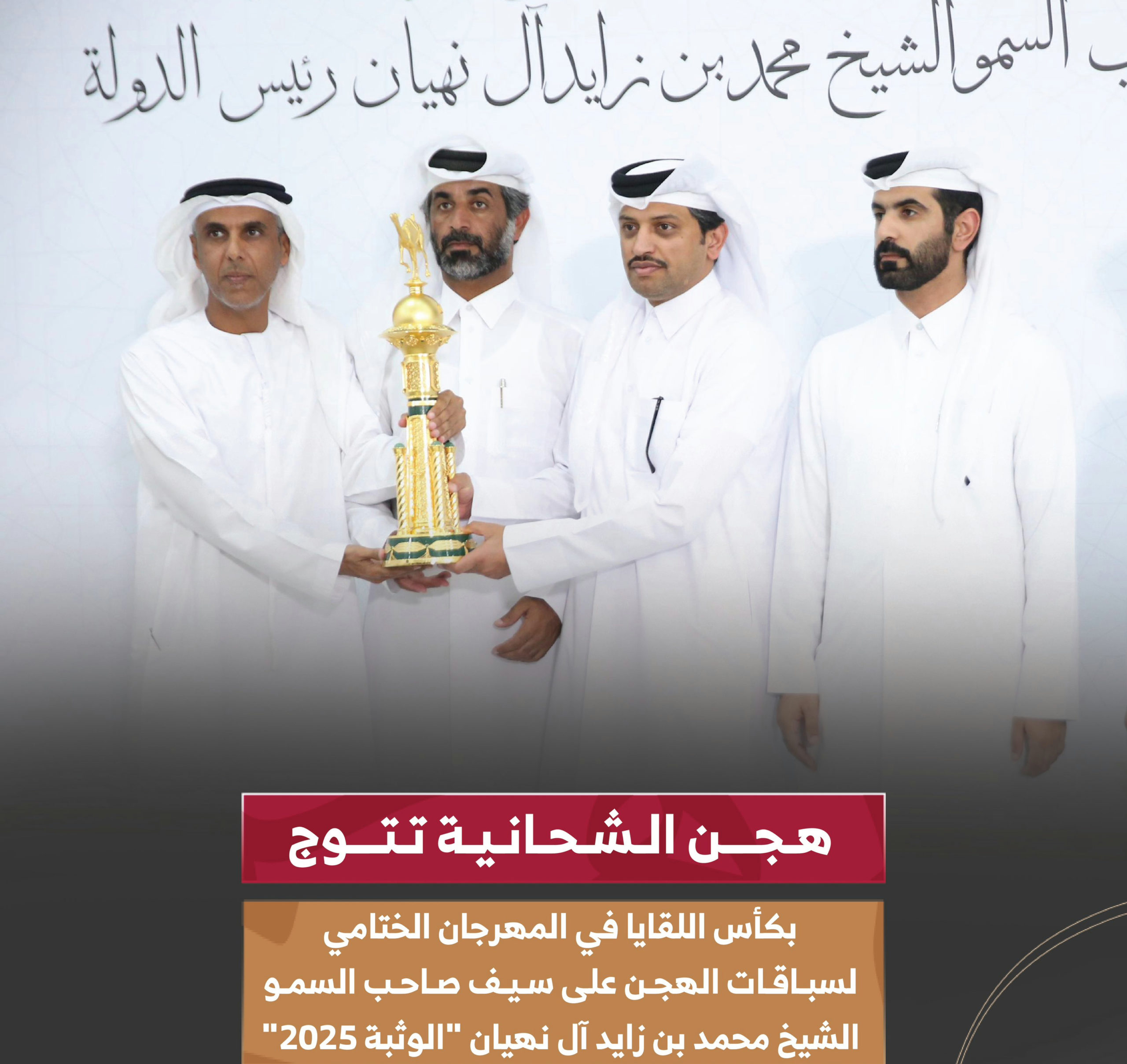 تألقت هجن الشحانية خارج الديار، وهذه المرة في المهرجان السنوي للهجن العربية الأصيلة ختامي الوثبة، آخر منافسات هذا الموسم قبل المقيض، حيث مارست هجن الشحانية هوايتها في جني الرموز سواء على الصعيد المحلي أو الخليجي..
