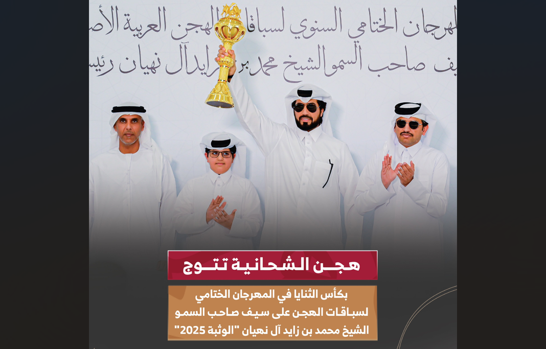 رسمت هجن الشحانية ممثلة في “تنويه” أجمل صورة تراثية نارية رائعة على أرضية ميدان الوثبة في حلته الجديدة متوجة بكأس الثنايا بكار مفتوح، وذلك مساء اليوم الخميس 15 مايو 2025، ضمن تحديات رموز ما قبل مسك ختام المهرجان السنوي للهجن العربية الأصيلة على سيف رئيس دولة الإمارات.