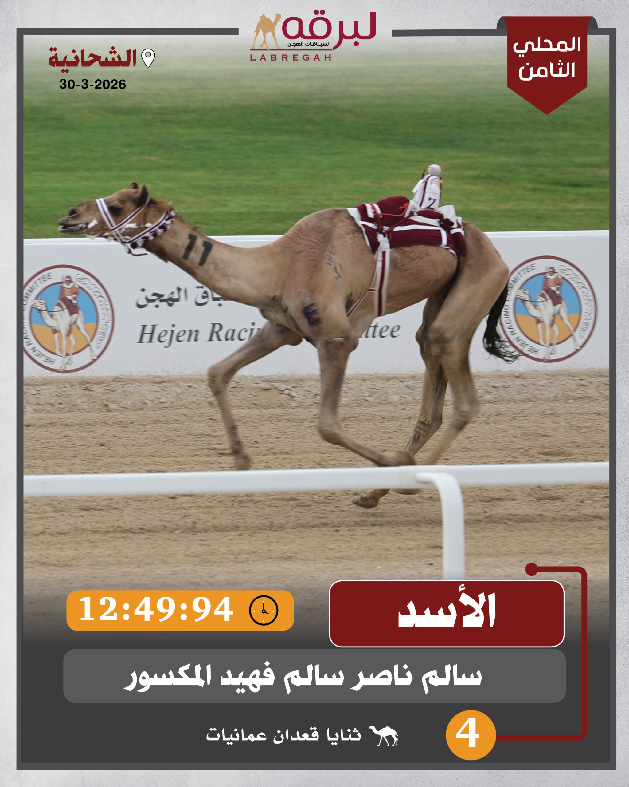 | الشوط الرابع | 1 | الأسد | سالم ناصر سالم فهيد المكسور | 12:49:94 |