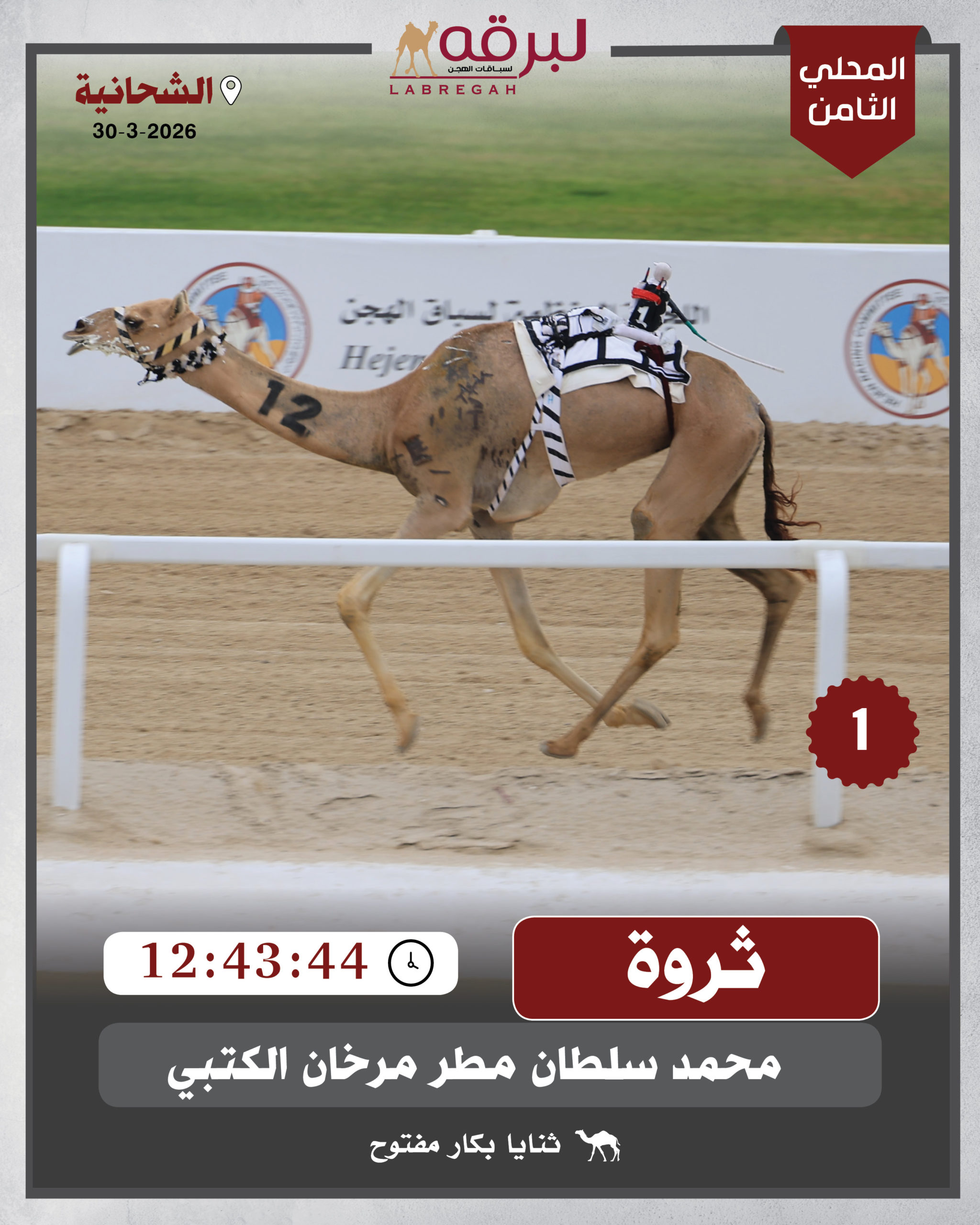 | مفتوح | 3 | بهرجة | حمد سالم علي جهويل النابت | 12:49:72 |