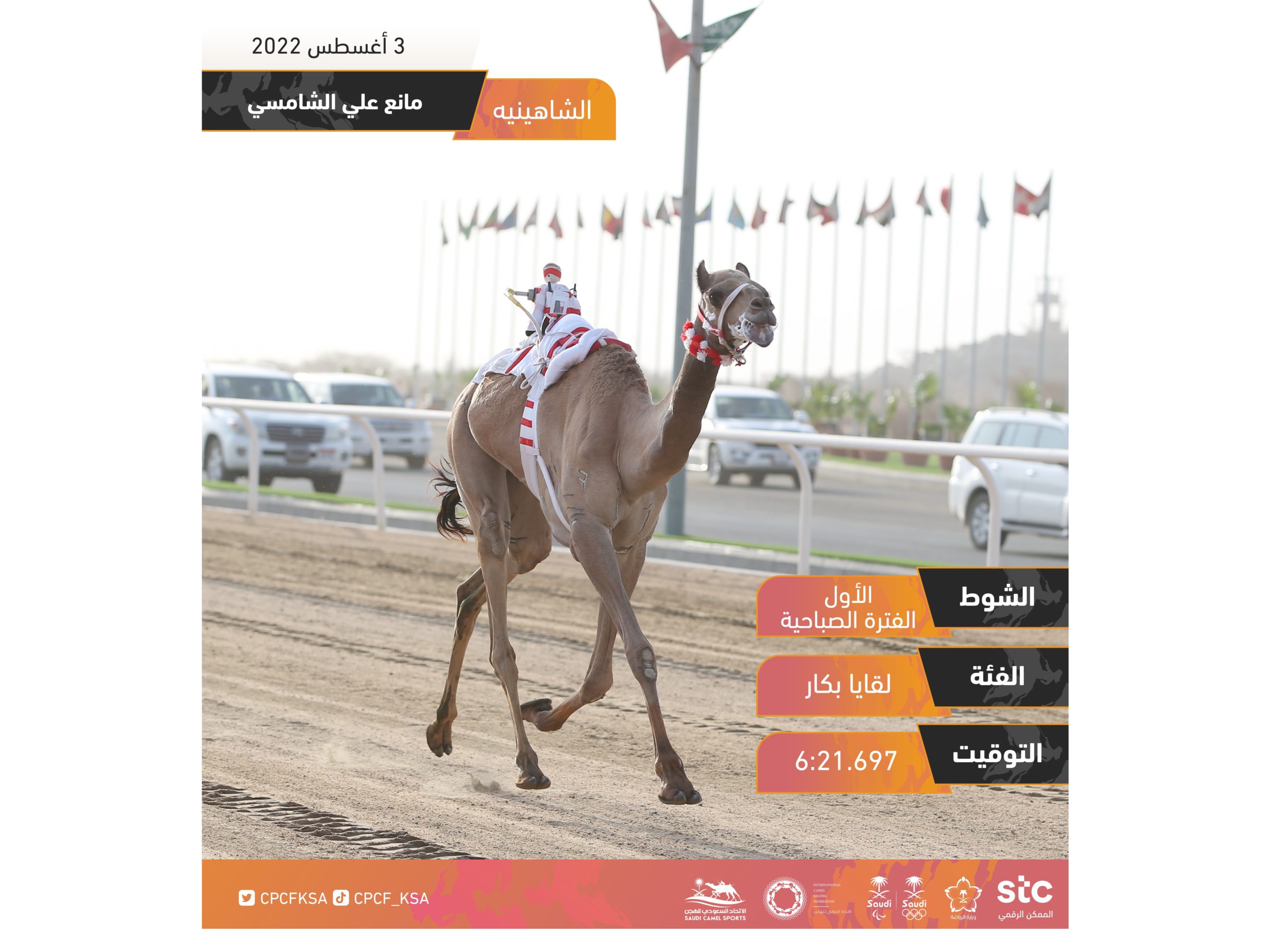 تصدرت “الشاهينية” ملك مانع علي محمد حمد الشامسي قمة الشوط الرئيسي للقايا بكار، ضمن منافسات الفترة الصباحية لليوم الأخير من تحديات سن اللقايا لمهرجان ولي عهد المملكة العربية السعودية للهجن 2022 في دوره التمهيدي، والذي يقام على أرضية ميدان الطائف.
