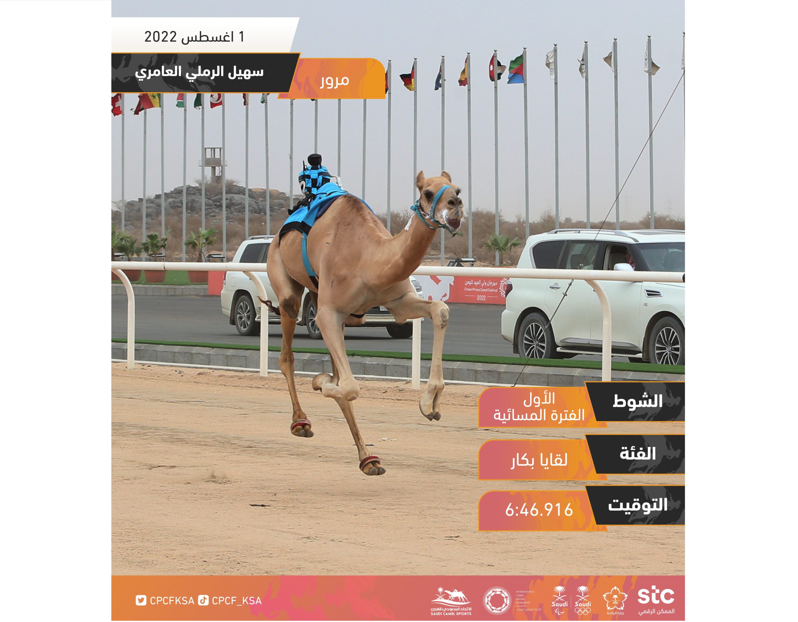 من بين 11 بكرة من سن اللقايا كانت “مرور” هي من عبرت بناموس شوط اللقايا بكار الرئيسي لتهدي مالكها سهيل الرملي محمد العامري الفوز الغالي، وذلك مساء اليوم الإثنين 1 من أغسطس 2022 ثاني أيام تحديات سن اللقايا من مهرجان ولي المملكة العربية السعودية للهجن 2022، حيث قطعت “مرور” رحلة الـ 4 كم في زمن وقدره 6.46.91 دقيقة، لتحل “ذخيره” ملك سامي سطام هلال الشيباني على المركز الثاني بتوقيت 6.55.79 دقيقة.