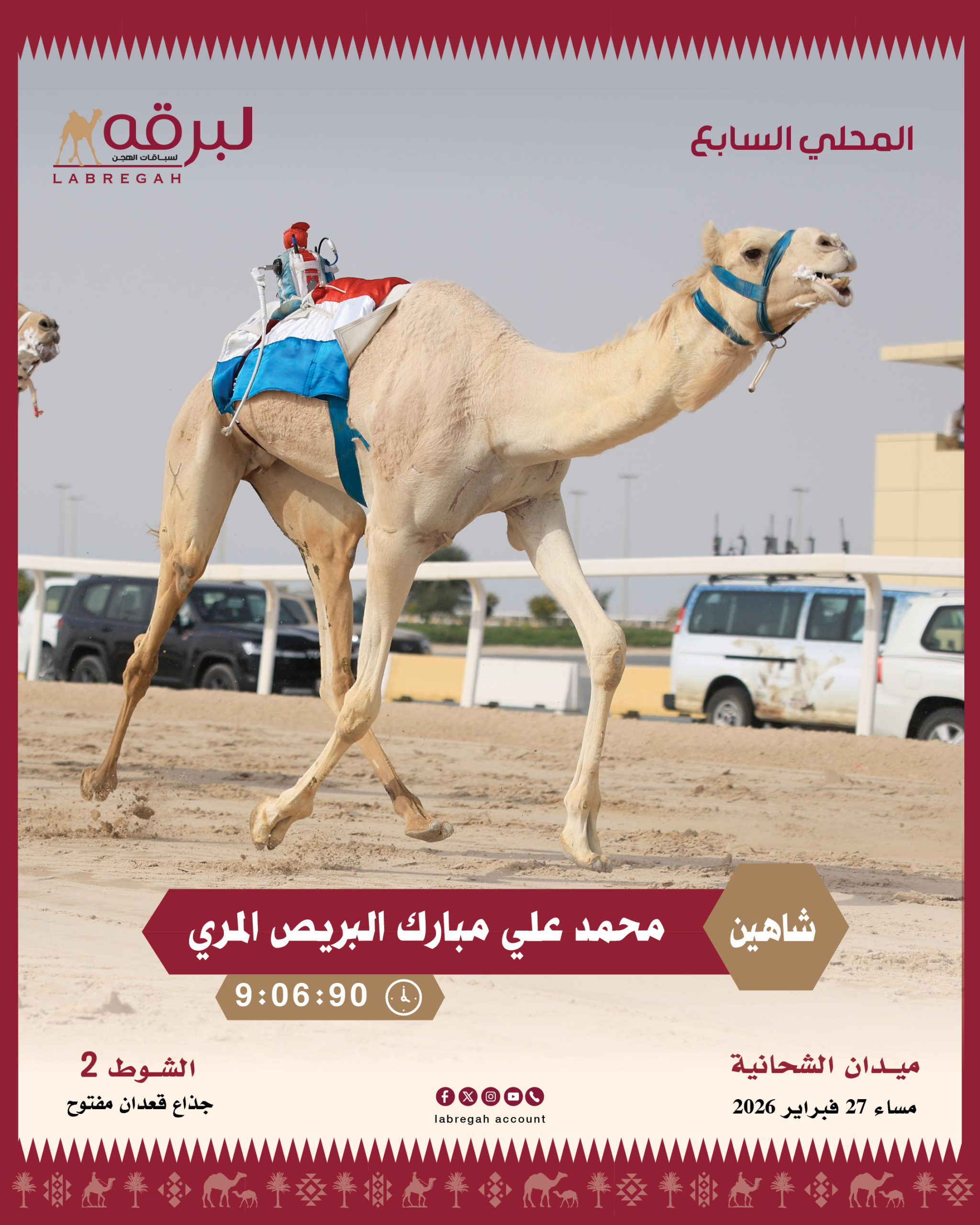 | الشوط الثاني | 1 | شاهين | محمد علي مبارك البريص المري | 9:06:90 |