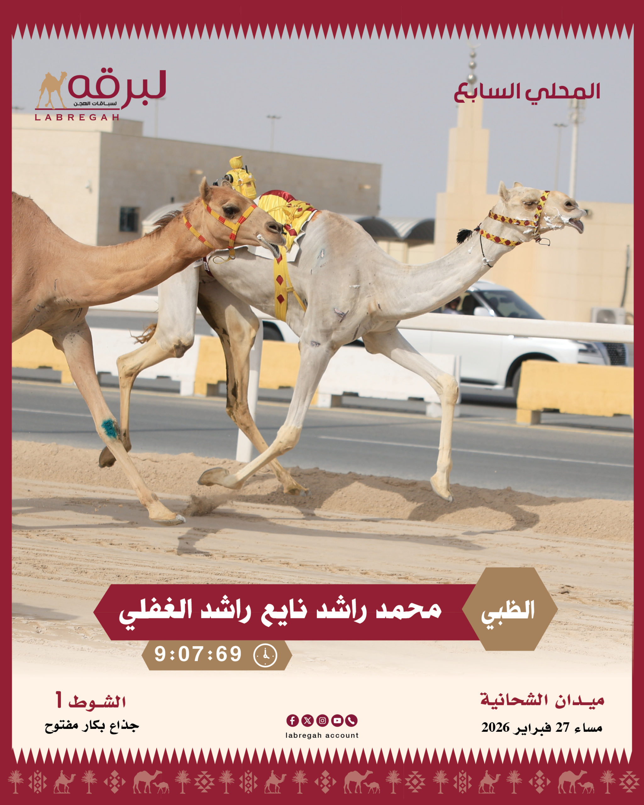 غادرت “الظبي” المملوكة لمحمد راشد نايع راشد الغفلي، بناموس الشوط الرئيسي للجذاع بكار مفتوح إلى دولة الإمارات، مساء اليوم الجمعة 27 فبراير 2026، سادس أيام المرحلة الثانية من السباق المحلي السابع، ضمن روزنامة موسم سباقات الهجن بالشحانية 2025–2026.