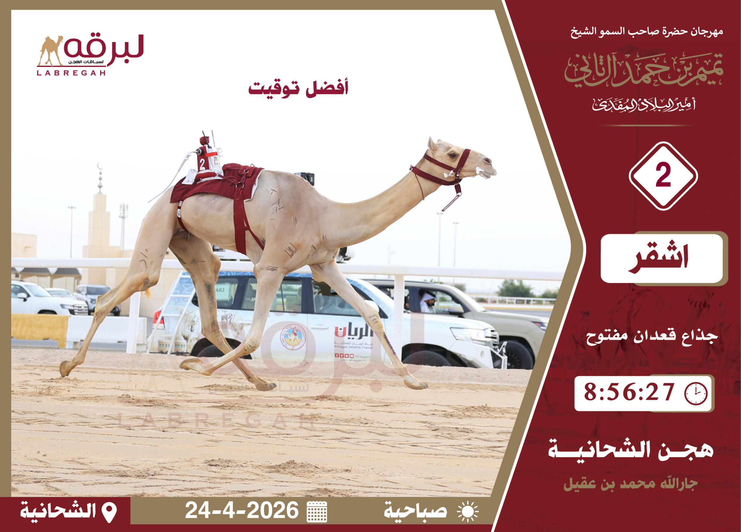 | قعدان مفتوح | 2 | متعب | هجن الرئاسة | سلطان محمد الوهيبي | 9:07:48 |