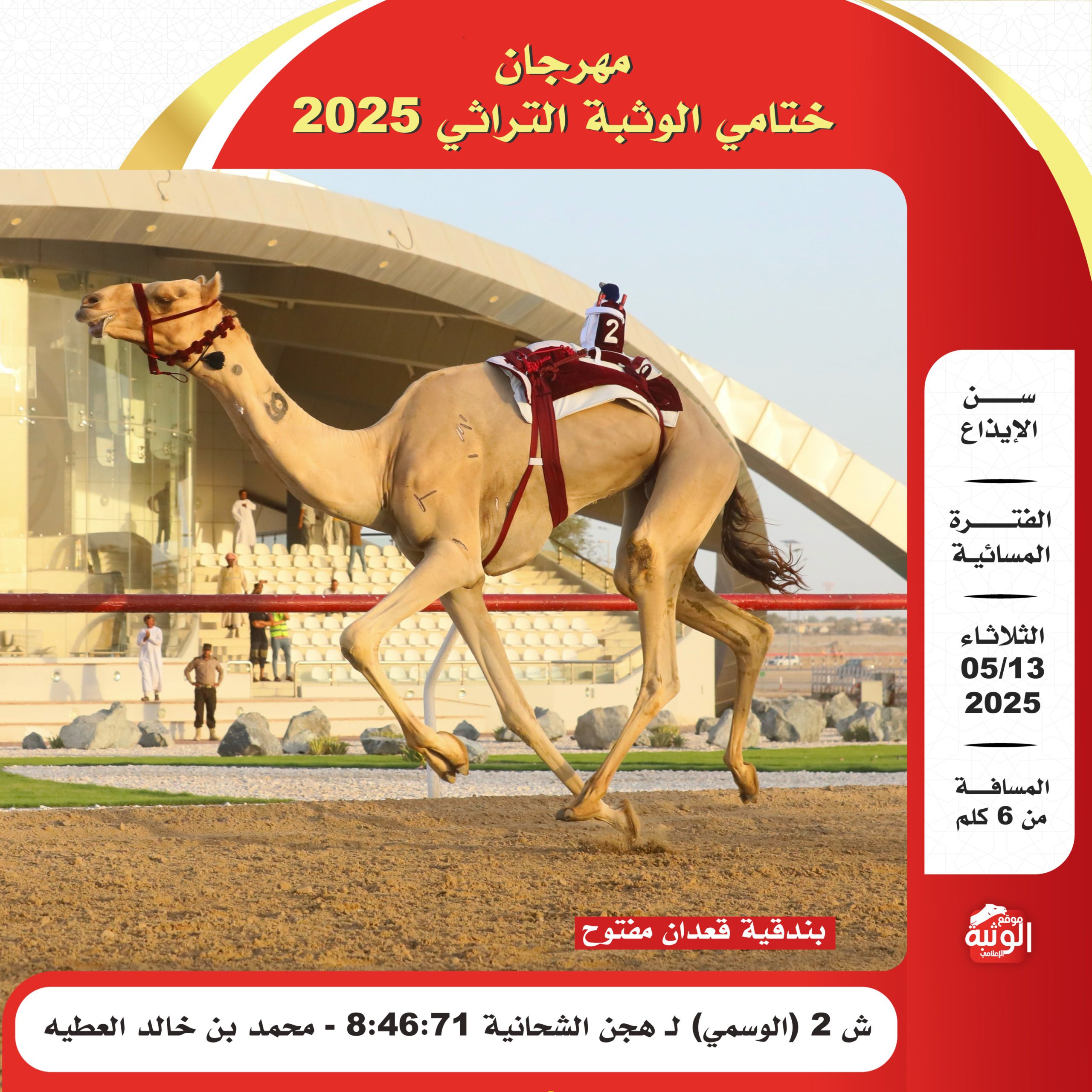 واصلت هجن الشحانية تألقها في مهرجان ختامي الوثبة 2025، مساء اليوم الثلاثاء 13 مايو 2025، حيث استطاعت أن تنتزع البندقية الذهبية للجذاع قعدان مفتوح، لتضاعف من غلتها في هذا المهرجان.